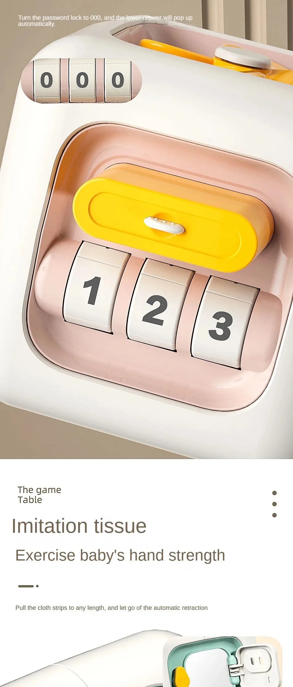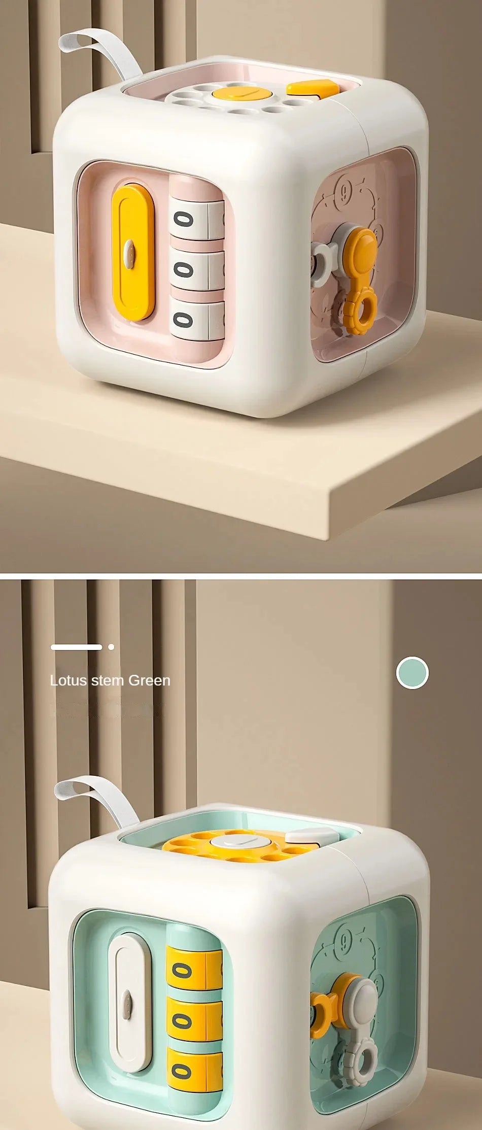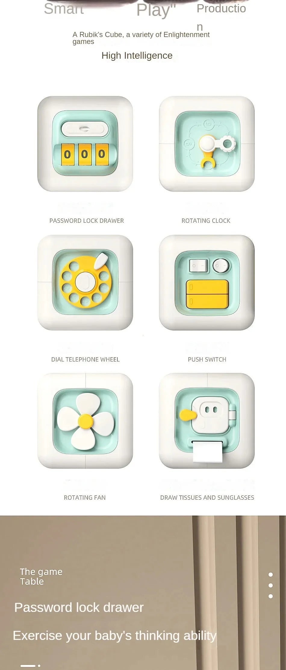 “Baby Practice Skills Drawer Cube – 6-in-1 Montessori Sensory Busy Board”