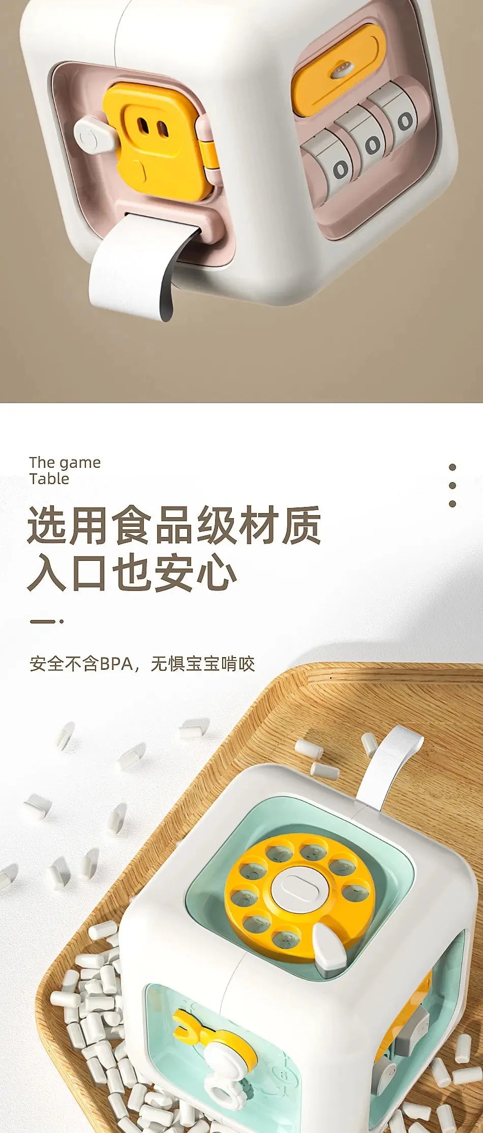 Baby Practice Skills Drawer Cube 6 in 1 Montessori Educational Toys Sensory Busy Board Fidget Educational Toys for Girl Boy