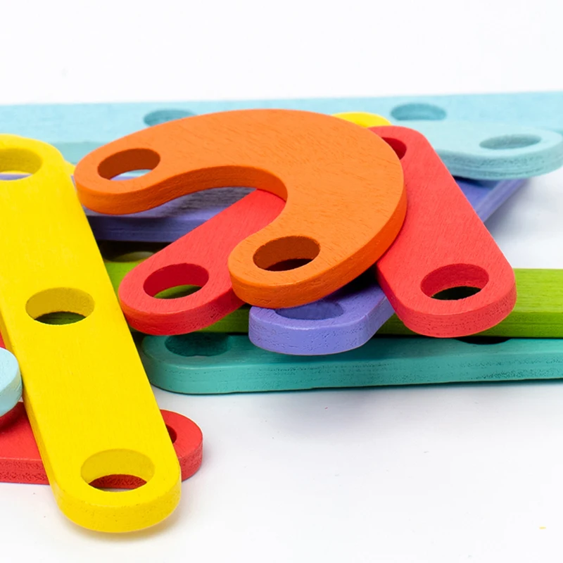 Smooth wooden pieces, bright colors, and hands-on play stimulate multiple senses for sensory learning.